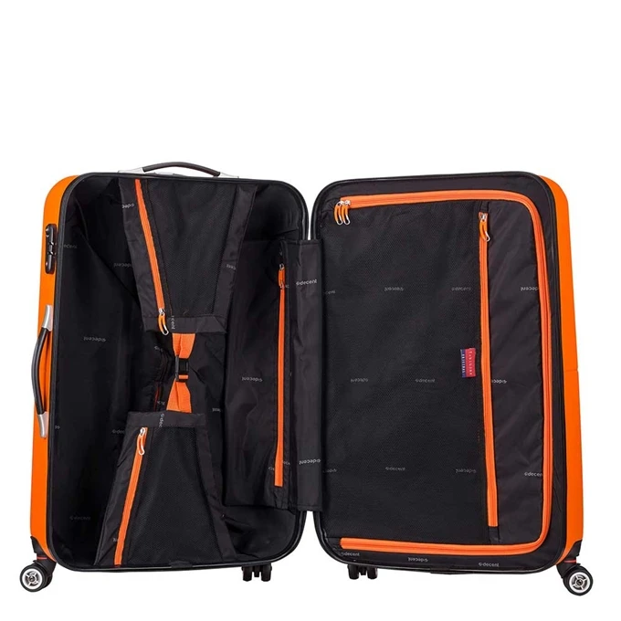 De Decent Neon-Fix Trolley 55 is een handbagagekoffer die voldoet aan de IATA-normen. Met een inhoud van 32 liter is deze trolley ideaal voor reizen van 2-3 dagen. De koffer is voorzien van een harde schaal, gemaakt van krasbestendig ABS-materiaal, dat jouw bagage beschermt tegen stoten en schokken tijdens je reis. Je waardevolle spullen zijn veilig opgeborgen met het geïntegreerde cijferslot. De binnenkant van de koffer is handig ingedeeld met een interne verdeler, waardoor je de ruimte kunt opdelen in twee compartimenten. Daarnaast zorgen de pakriemen ervoor dat je kleding en spullen netjes op hun plek blijven, zelfs tijdens turbulent reizen.
