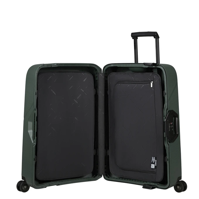 Met de Magnum ECO collectie heeft Samsonite een serie op de markt gebracht die symbool staat voor het streven naar duurzaamheid met behoudt van de sterke kwaliteit. Deze Samsonite Magnum ECO Spinner 69 is op een innovatieve en duurzame manier gemaakt in Europa. De buitenkant is gemaakt van 371 gerecyclede yogurtpotjes en de binnenkant gemaakt van 10 gerecyclede petflessen. Deze innovatieve manier van produceren heeft ervoor gezorgd dat deze Magnum ECO Spinner een licht, sterk en bovendien een duurzaam product is.