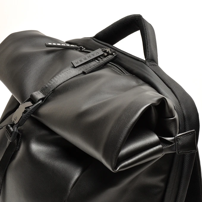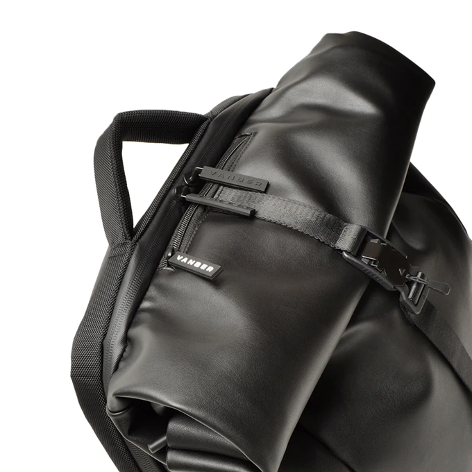 De VANBER Rolltop is gemaakt van Desserto, Vanber’s duurzame cactusleer. Dit materiaal bezit een unieke mix van eigenschappen: slijtvast, ademend, weatherproof en zacht aanvoelend. De achterkant is gemaakt van 100% gerecycled nylon.